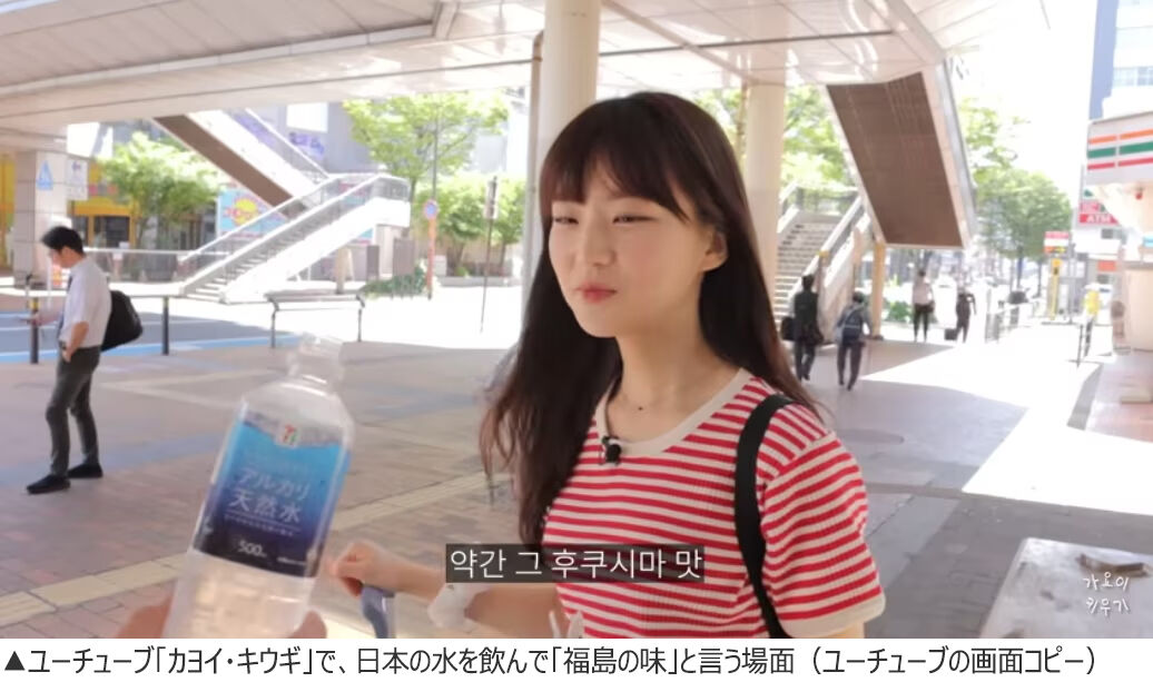 問題の動画は9日に投稿された。30万ウォン(約3万円)で福岡県北九州市を旅行するという内容だ。動画の中で、男性は北九州空港近くのコンビニでペットボトルの水を購入するが、その水を飲んだ後に発した言葉が物議を醸した。男性は顔は映っていないものの、一緒に旅行中の女性に向かって「ああ、やっぱり味が違うね。ちょっと、えーと、福島の味」と言った。