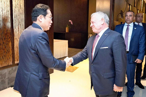 岸田文雄首相は2日、アラブ首長国連邦(UAE)のドバイでヨルダンのアブドラ国王と1時間ほど会談した。2024年に1億ドル(およそ146億円)の財政支援をする準備を進めると伝えた。