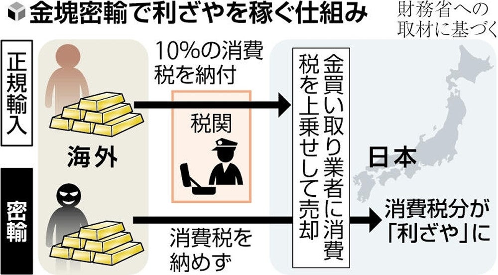 金の価格が高値で推移する中、金を密輸して消費税の納付を免れ転売することで利益を得る手口が増えており、税関などは警戒を強めていました。