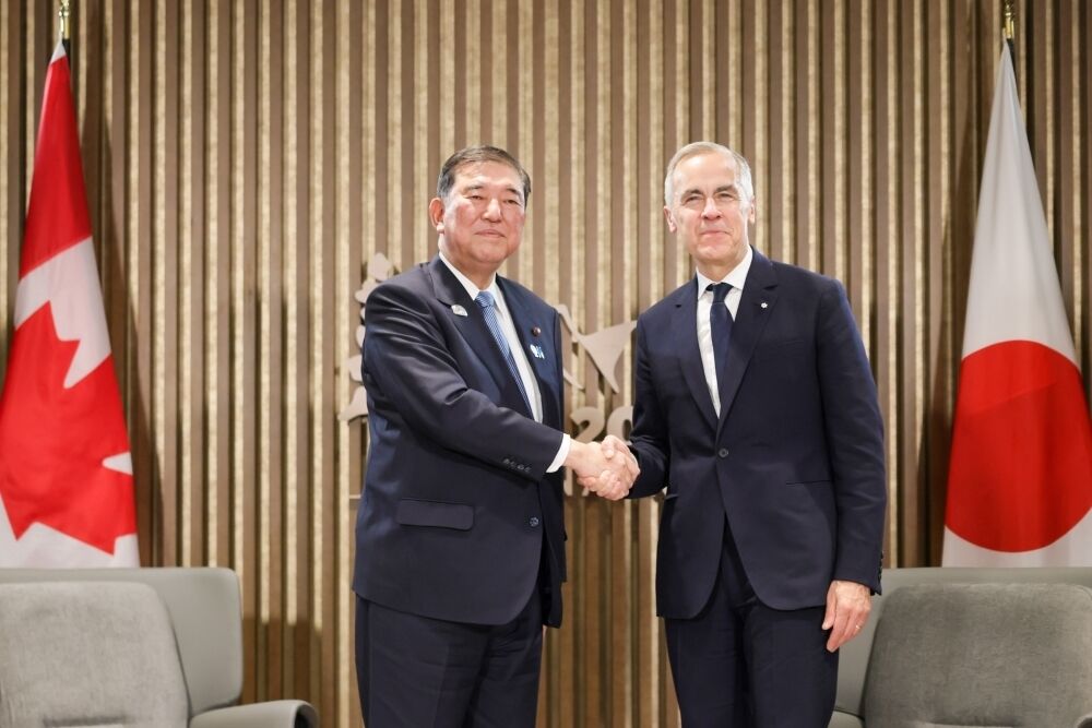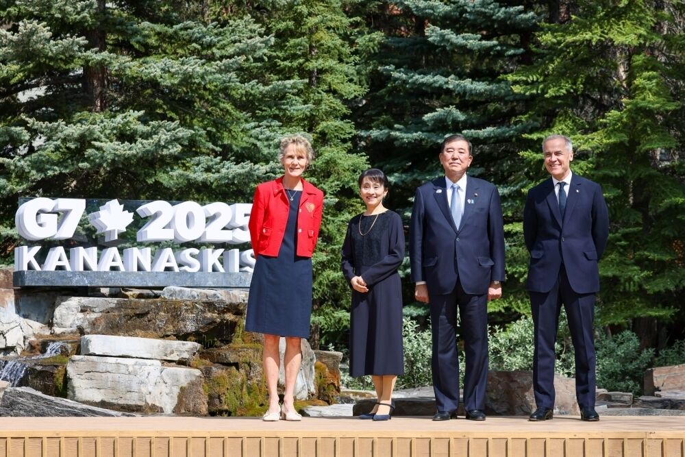 ↑カーニー首相夫妻による出迎えを受けた石破茂首相。