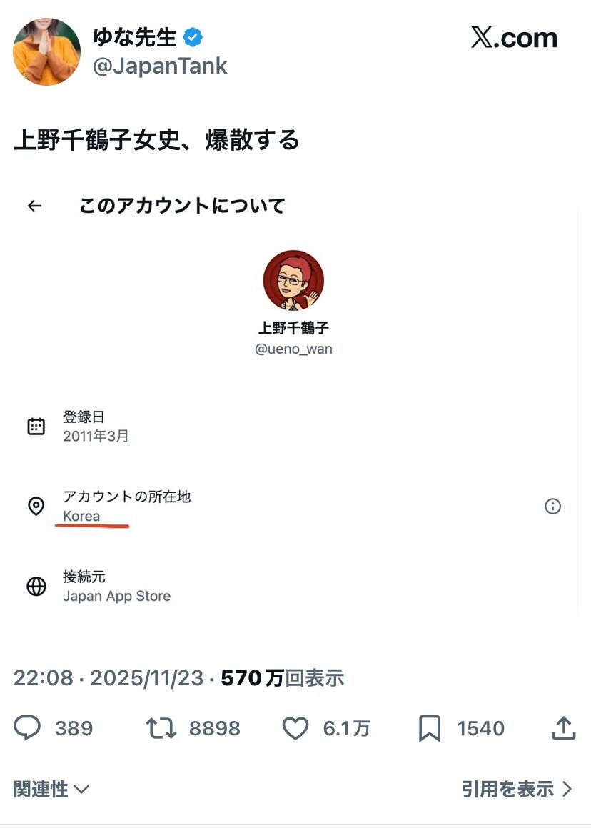 日本人女性として日本人男を海外に向けて叩く体裁のアカウントの所在が韓国からunknownに変わる瞬間を見てしまった。知られたくないんだろうな。 https://t.co/d8ouBN5zCg pic.twitter.com/RKcdKrsdTv