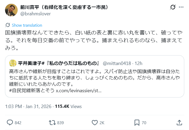 - それをすれば、警察ではなく街宣車系の自称極右に狙われるぞ