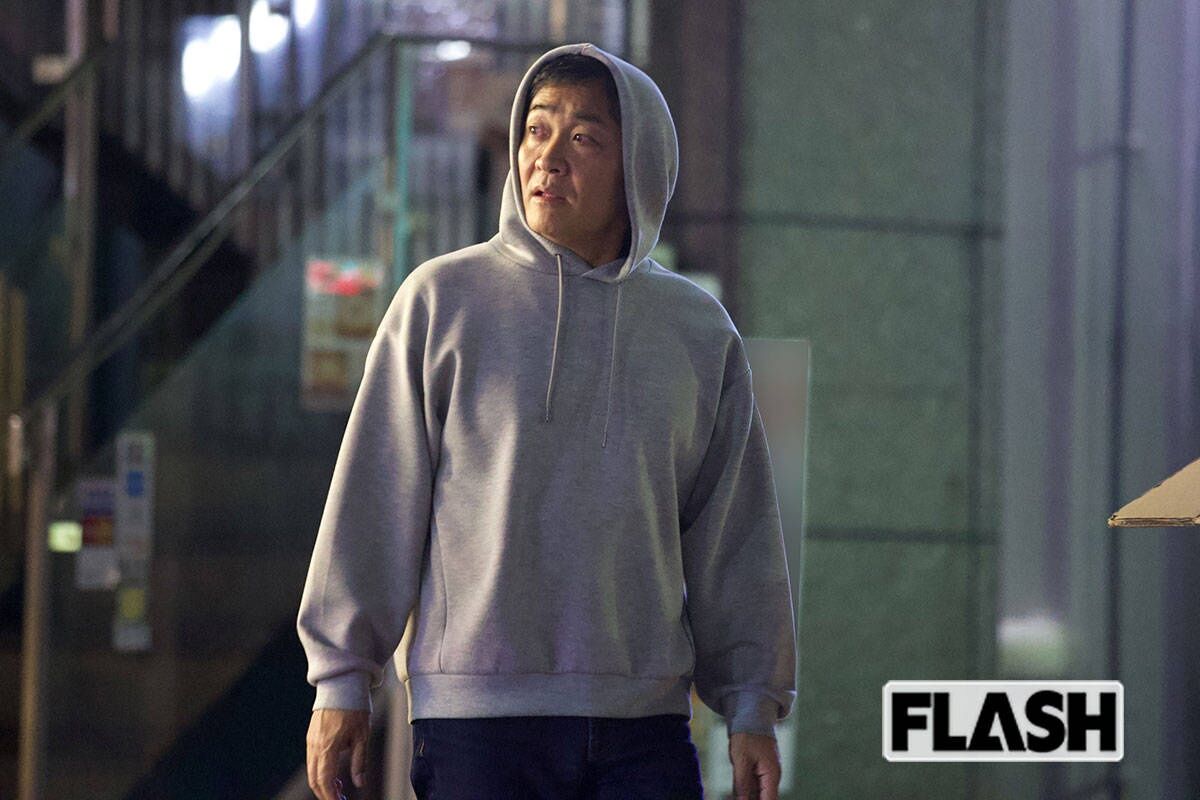 10月30日深夜、都内のバーで元グラドルと密会した後に“変装”するかのように、フードを被って出てきた玉木雄一郎氏(写真・皆川拓哉)