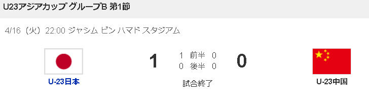日本代表 7-0 中国代表